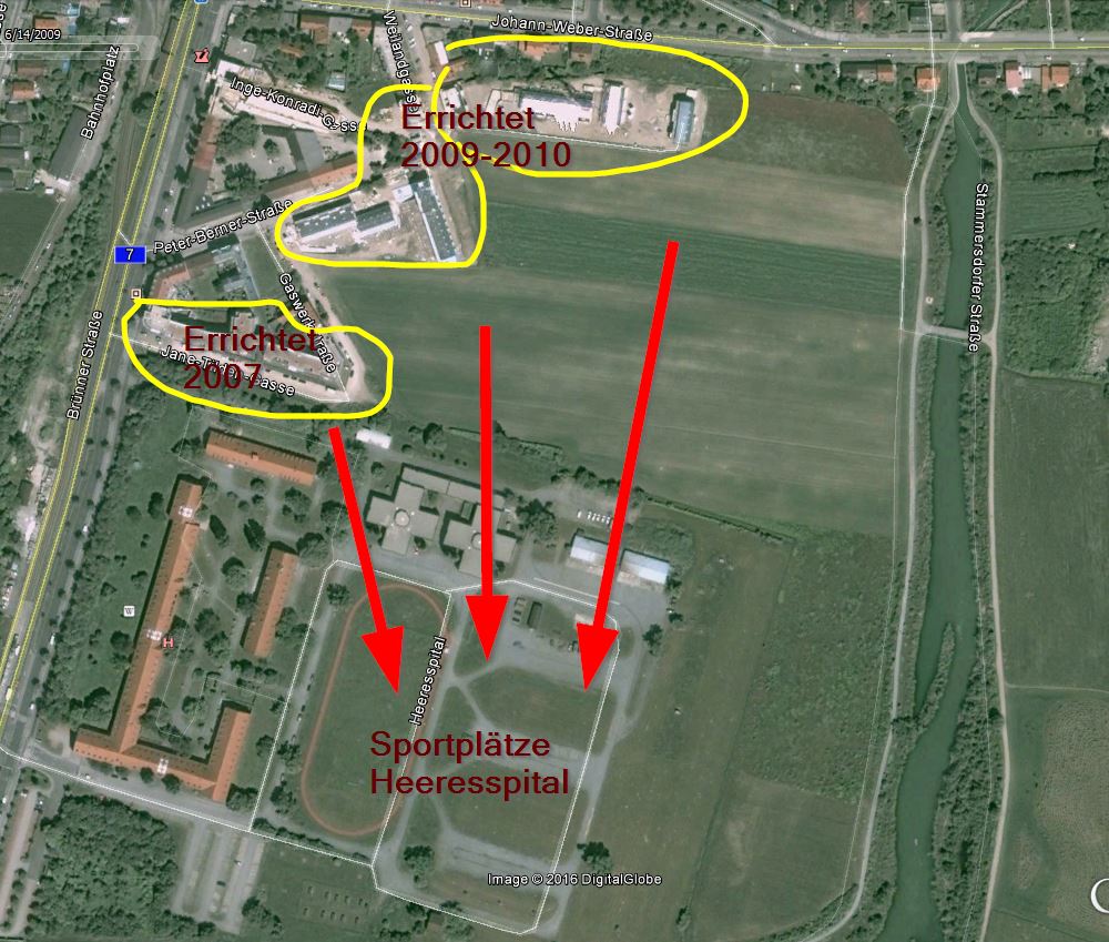 „Am 16.8.2007 fand im Gelände des Heeresspitals ein Lokalaugenschein (MA 22, Uni Wien) aufgrund einer vom damaligen Zuständigen gemeldeten ’Zieselplage’ auf dem dortigen Sportplatz statt, der auf eine hohe Populationsdichte der Ziesel schließen ließ (auf einen Blick waren mehrere Tiere sichtbar). Die Tiere seien massenhaft erschienen, ’seit entlang der Brünner bzw. Johann-Weber-Straße gebaut’ wurde.“