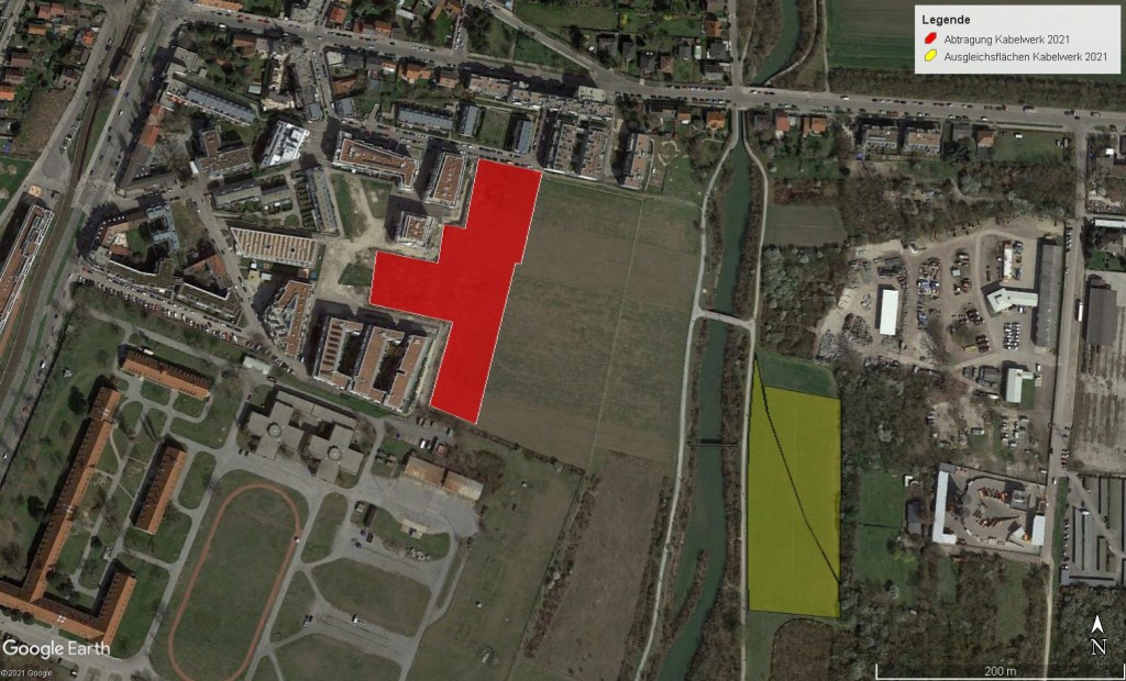 - 2017: Bauprojekte von Kabelwerk und Familienwohnbau, eigentlich im Ziesellebensraum, jetzt allerdings laut Behörde nicht mehr genehmigungspflichtig, da die Tiere ja zuvor durch den zweckfreien Bodenabtrag “im öffentlichen Interesse” vertrieben wurden.