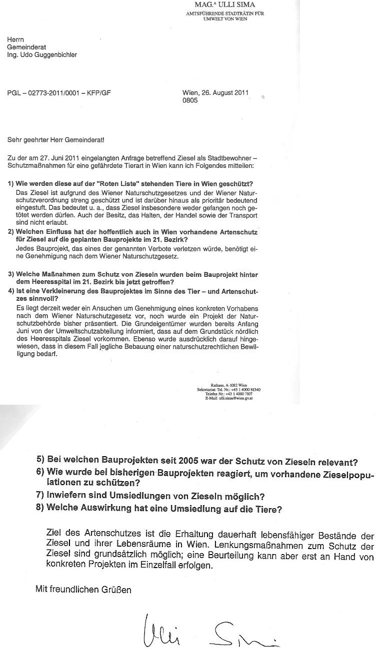 Nachfolgend listen wir publizierte Statements der Politik im Zusammenhang mit den Zieseln beim Wiener Heeresspital, Ziesel im Allgemeinen und zum Wohnbauprojekt nördlich des Heeresspitals auf.