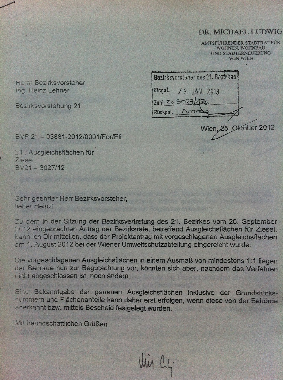 SPÖ – 3.1.2013 Keine Beantwortung der von der Floridsdorfer FPÖ eingebrachten Anfrage nach der konkreten Lage der Ziesel-Ausgleichsflächen durch Stadtrat Michael Ludwig.